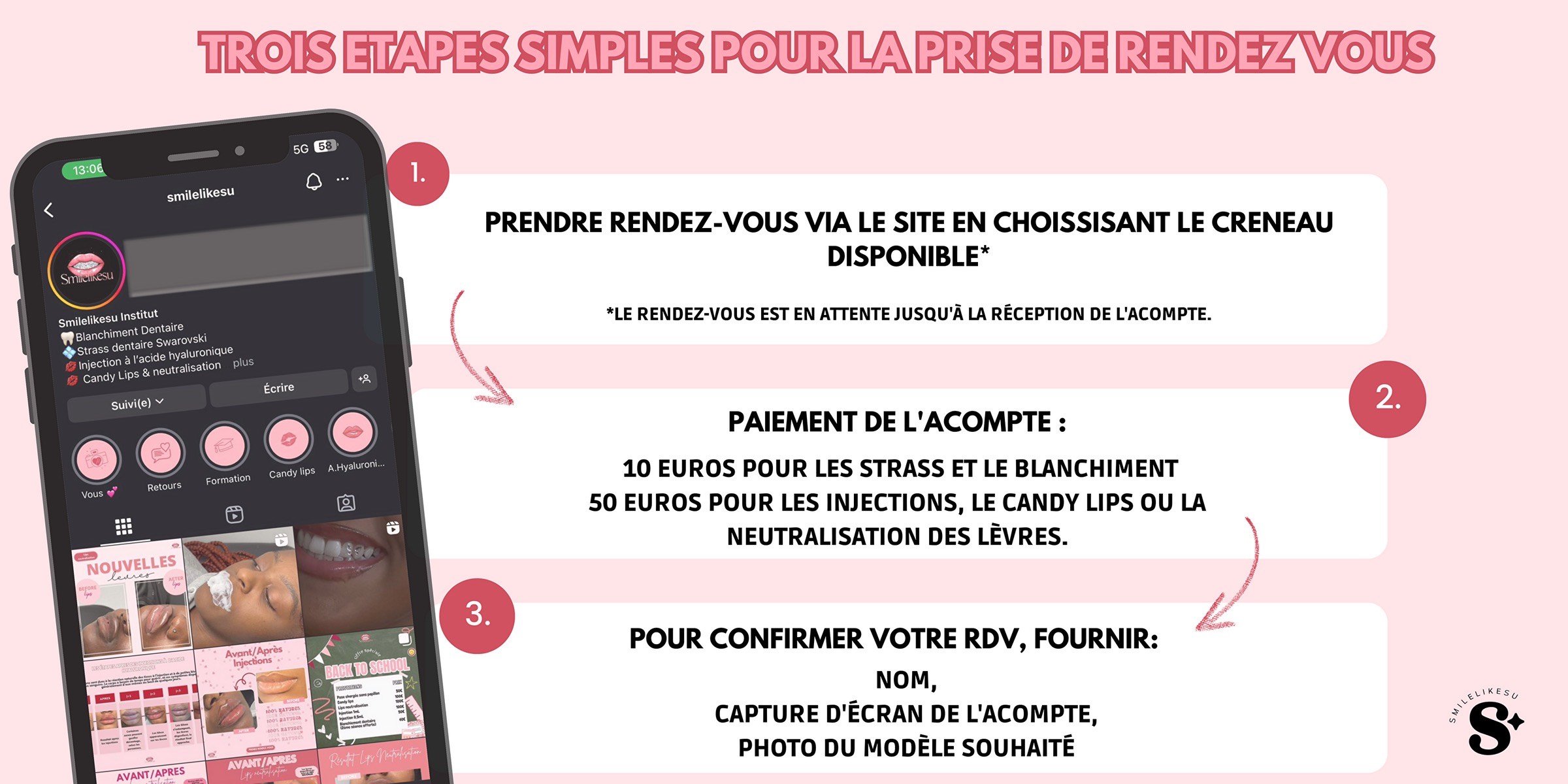 L’acompte doit être réglé via le PayPal indiqué dans notre bio Instagram.